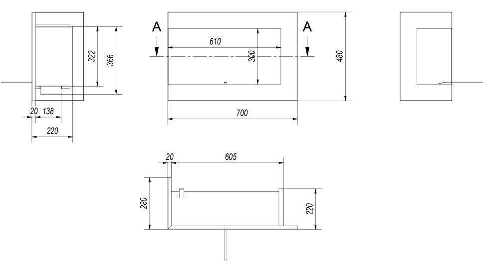 Очаг – это емкость куда заливается жидкое топливо. Емкость внутри заполняется керамическим материалом, который впитывает биотопливо, и в случае опрокидывания камина топливо не разливается. За счет этого конструкция стала полностью пожаробезопасной. Очаг встраивается в корпус из стали, который окрашивается специальной термостойкой краской, или же в заранее подготовленную нишу, изготовленную из негорючих материалов.